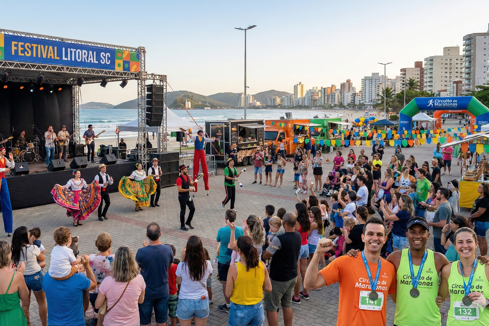 Festival itinerante de artes integradas com atrações musicais, folclore e circo realizados nos municípios que recepcionaram o evento esportivo Circuito de Maratonas e direcionado a todos os públicos. Objetivo de transcender atividades esportivas de forma transversal, oferecendo ao mesmo tempo Esporte, Cultura e Artes, em um mesmo local.