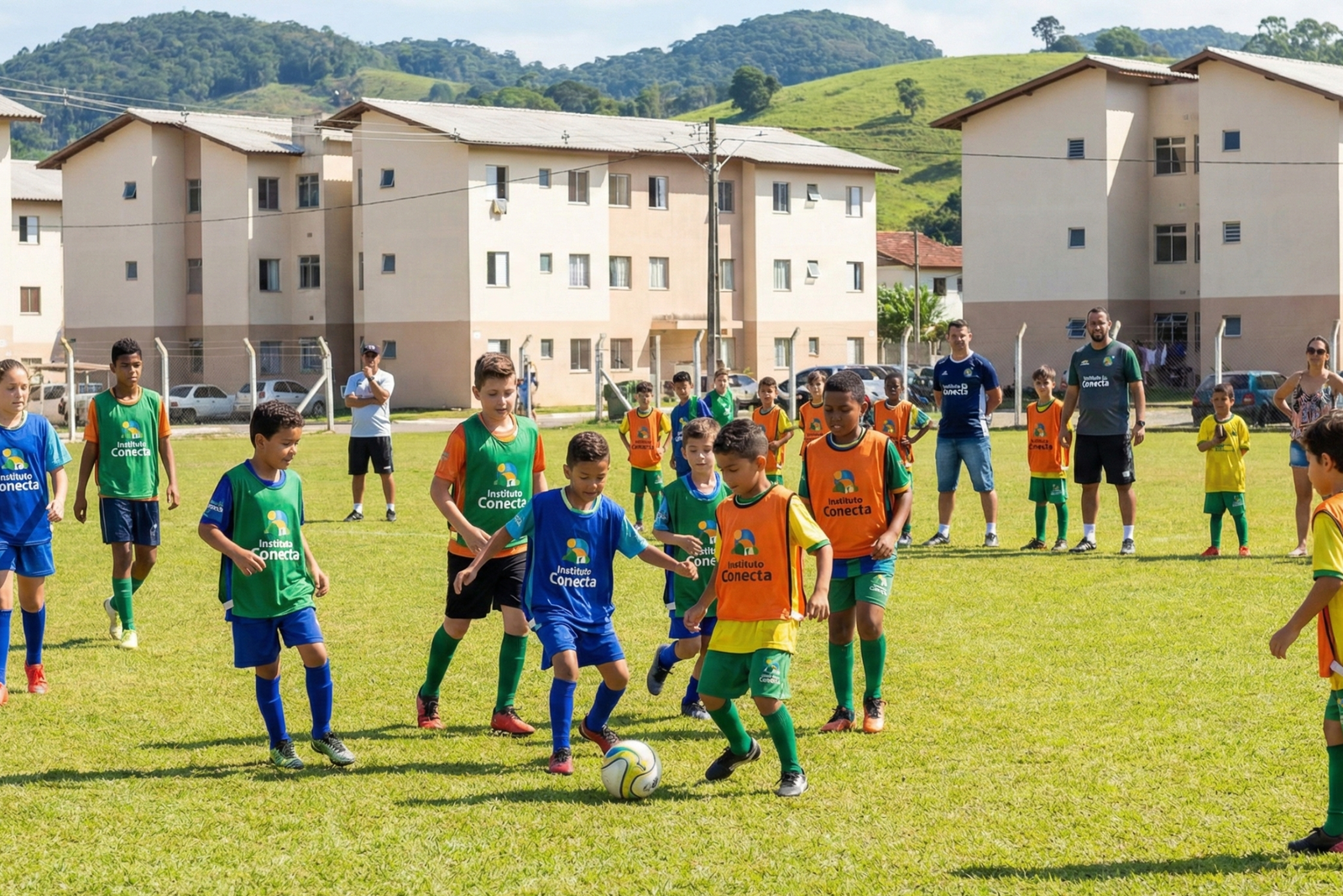 Projeto com aulas de futebol de campo desenvolvidas no contraturno escolar, priorizados os bairros com potencial de vulnerabilidade, em Jaraguá do Sul/SC, identificados em proximidade a conjuntos habitacionais do Programa Minha Casa Minha Vida – Faixa I. Disponibilidade de equipamentos e uniformes aos grupos participantes.
